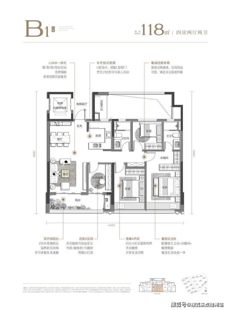 本次推出的建面约118方和建面约157方两个“四房”改善类户型,都是项目“首次推出”的户型,在空间尺度与功能设计上,拥有很强的独特性。