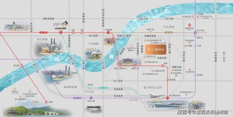 潮颂府位于大会展中心周边1公里的核心区域,牢牢占据临空经济示范区核芯,不仅远见板块崛起,其交通优势更是堪称“王炸”,将杭州繁华版图紧密缝合。