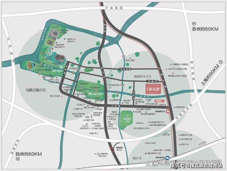 雅居乐春风渡花苑凭借优越的自然资源,尊重土地,循江南园林造园手法,以“街、巷、境”打造水乡巷院意境空间,同时赋空间以活力,打造共享生活剧场、邻里会客厅等全龄生活社区,满足0-100岁乐活需求。项目紧邻乌镇自然水系东市河,富氧健康,枕水而居,还原江南人居本真。