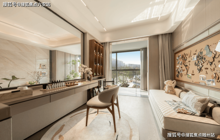 建面约117㎡户型,不仅做出了四房两卫的功能,更以2米左右进深的观景阳台,创新性的L型转角阳台设计,将无遮挡河岸线、滨水公园与城市天际线一同框入生活画布。清晨推窗,可见水面荡起粼粼波光;夜晚凭栏,河岸灯火绘就流动的星河剧场。这种“把自然装进客厅”的空间,重新定义了杭州滨水公园住宅的视界标准。