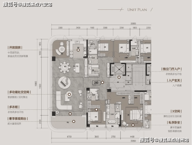 项目全盘规划188-288㎡大平层户型,以纯粹面积段确保圈层统一性,精准回应高端客群需求,户型设计打破传统边界。