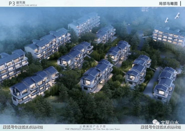 新中式现代简约风,配合苏州园林设计。依山而建,临溪而筑,以自然为墙,