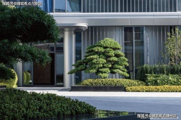 这种创新设计不仅令建筑外观宛如春风拂过西湖泛起的涟漪,更实现了功能性与美学的统一。大面积玻璃幕墙缔造无界天幕般超感视界,外立面巧妙融合超白玻璃与铝板线条,设计灵感源自纽约Summit豪宅,展现出独特的现代建筑美学。园林景观采用自然围合式布局,以抽象化的“四水归堂”格局,围合出一方桃源之境,精心打造“微度假隐逸之境”。每栋楼入口处种植的罗汉松,更彰显出社区的尊贵气质。