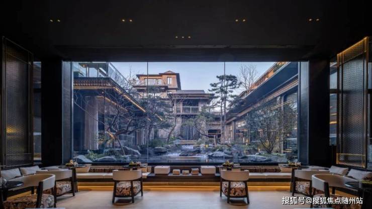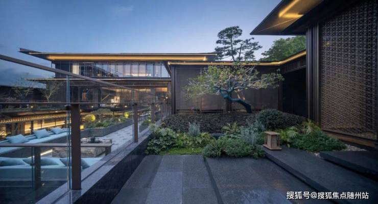 多重标高构建复合场景,亦亭亦榭,形成多样化的视觉序列。©绿城杭州春颂香雪里、LEAP绿城利普