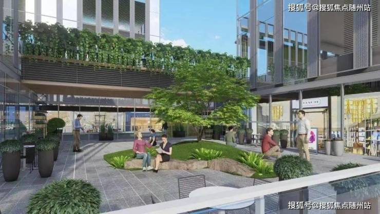约4万方活力商业,设置了约200米的商业街,通过层叠立体的庭院、广场、绿地、露台,还有那随处可见的艺术小品,形成了一个围合式的漫步街区。