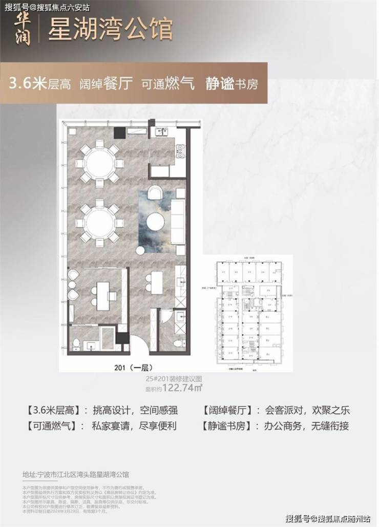 华润·星湖湾公馆楼盘位于宁波湾头路287号,拥有建筑面积约40-130㎡的轻奢loft公寓,总共有94套房源分布在2至5层。这里的房屋层高设计独特,平层为3.6米,loft复式为4.5米,为居住者提供更加宽敞舒适的居住空间。