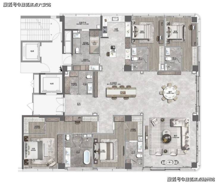 410-460㎡平层:两梯一户(460㎡)/两梯两户(410㎡),5-6房科学布局,专属保姆房,满足多代同堂需求。