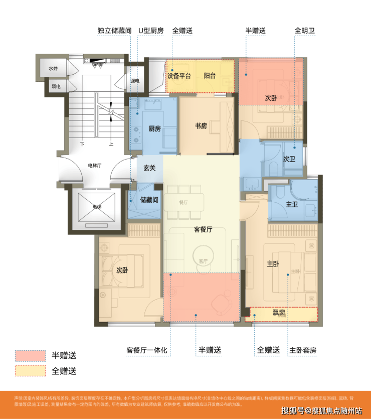 一梯两户,无北侧连廊;室内为4房间+1储藏室设计,南北通透;整体得房率超92%!