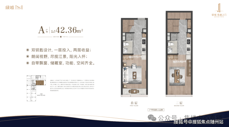 建筑面积约34-59㎡双钥匙公馆,买一层享两层,双倍空间,灵活多变,满足居住、办公、投资等多重需求,是杭州难寻的60万以下小户资产,且为实景准现房,小投入回报快,明星产品价值显著。