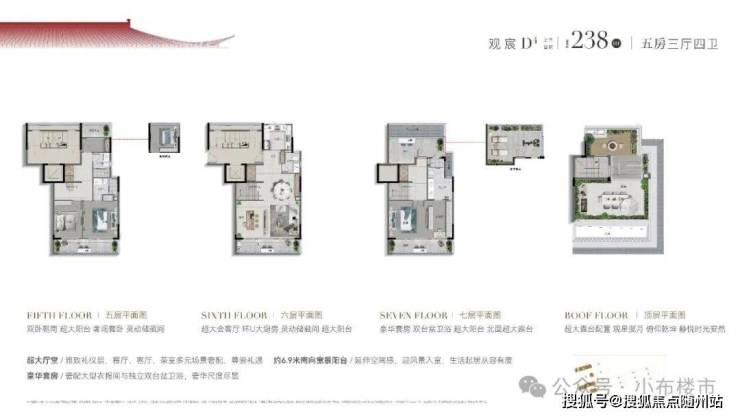 上叠(建面约156-177㎡):屋顶露台+全景窗,尽揽天际线