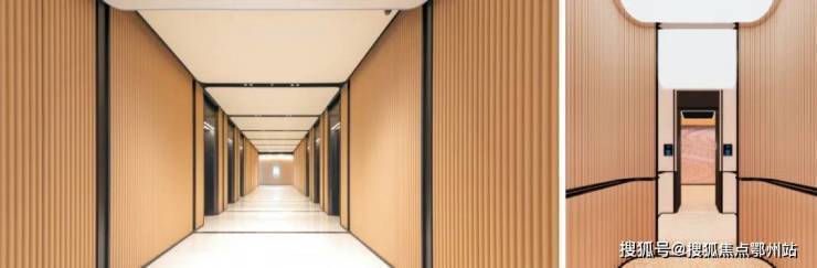 普通超甲级写字楼大堂挑高也就10米,而EIC奢侈地达到了约18米。8部迅达电梯,速度达到7米/秒,远超普通的3-4米/秒,轿厢高度3.6米也远超普通2.7米标准。公区设计时尚,标准极高,橙色波浪纹木饰面通铺到顶,简洁明亮。