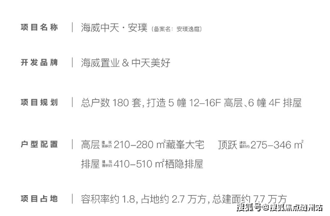 作为两大本地实力房企海威与中天联袂献上的“安字系”开篇力作,项目共计规划5栋12-16层的小高层以及6栋4层滨水联排,总计仅180席。