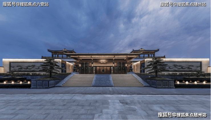 - **纯正宋韵,形制尊贵**:以《千里江山图》《四景山水图》为灵感,复刻宋代建筑精髓。外立面采用伊朗进口“蓝眼睛”石材与香槟金铝板,歇山顶门头、戗角飞檐、青石地雕等细节,展现“天地人”和谐共生的东方哲学。