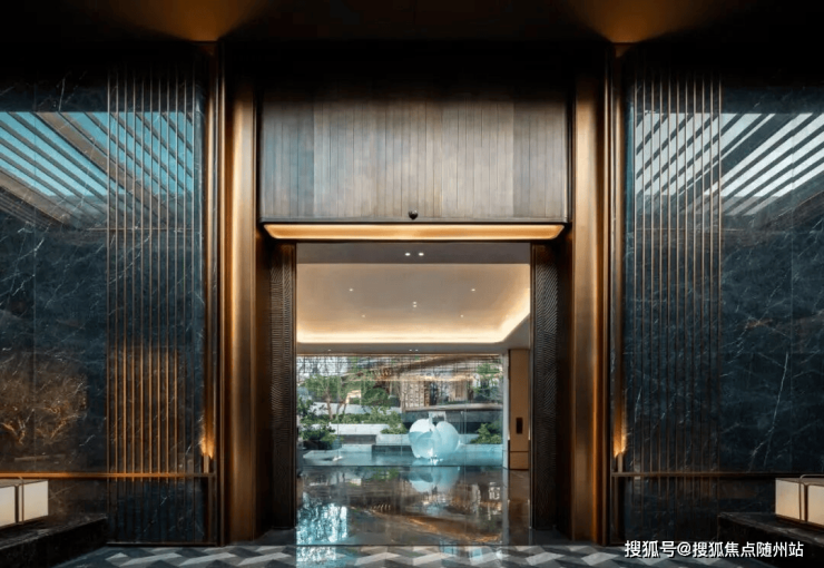 穿过铜门,进入大堂,视线立即穿过通透的落地玻璃,一幅立体山水画卷呈现眼前,层层叠水,水波款款而下,枝繁叶茂,树影婆娑。