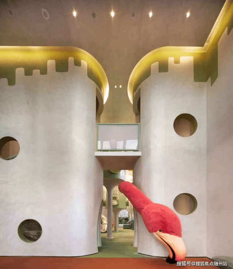 在架空层最为出彩的,也不仅仅是“高度”上的简单突破,整体的功能规划也充满着大量的惊喜。在5号楼下的架空层,项目腾出空间做了一整层的超大童玩空间整体面积超过480平米,根据孩子不同年龄阶段来设计功能不同的空间场景。