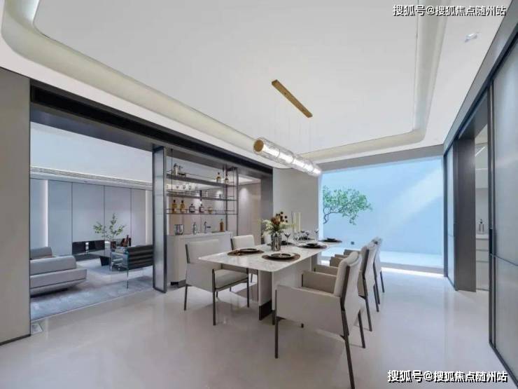 首层南北双庭院 :南向花园莳花品茗,北院私藏静谧, 独立玄关+餐客一体横厅 衔接自然;