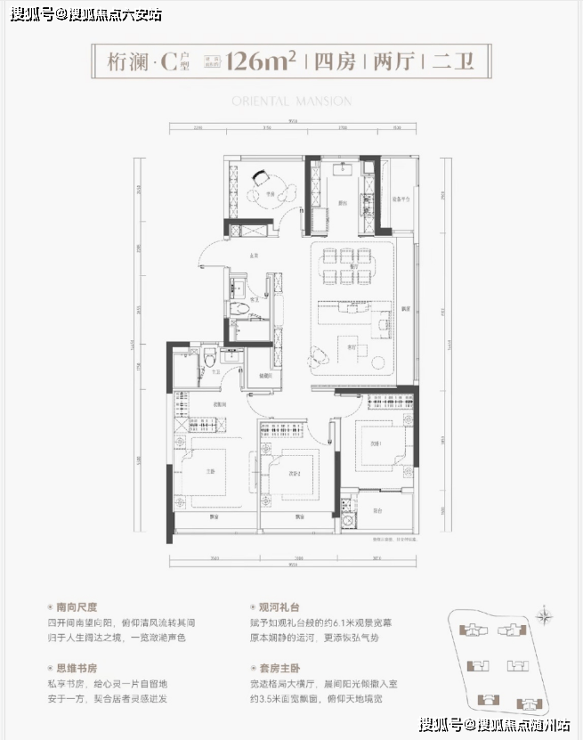 建面约126平米户型,四开间朝南的尊崇布局,主卧配3.5米宽景飘窗,更享6.1米观景宽幕,让您的家成为“运河头排观景席”。运河船只穿行,每一刻都是永恒的风景画卷。
