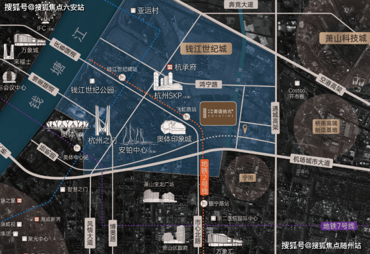 【中天海威·奥语拾光】位于钱江世纪城,未来总部基地启动区。未来将与奥体印象城、SKP、潮启世纪中心(约150米地标综合体)形成商业聚合效应,成为三公里内社区消费配套之一,集餐饮,休闲,娱乐为一体,形成强大的核心消费圈。