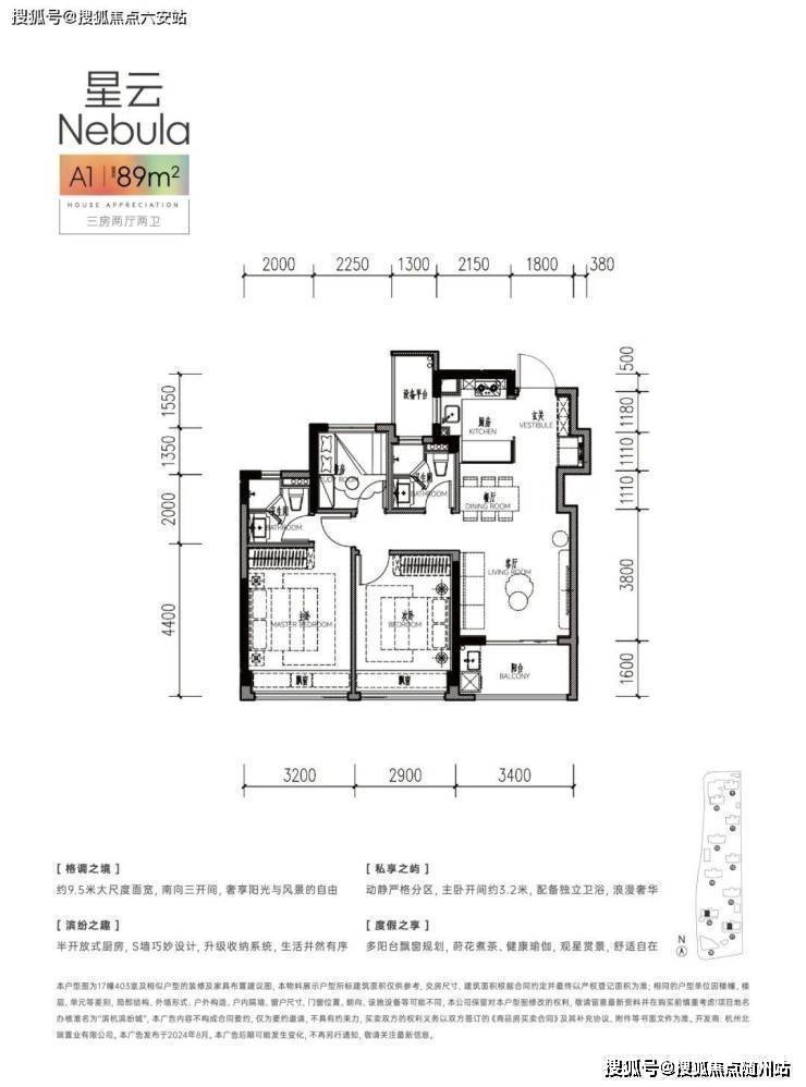 • **南向三开间**:约5.6米全景飘窗+双联阳台,主卧套房预留独立衣帽间;