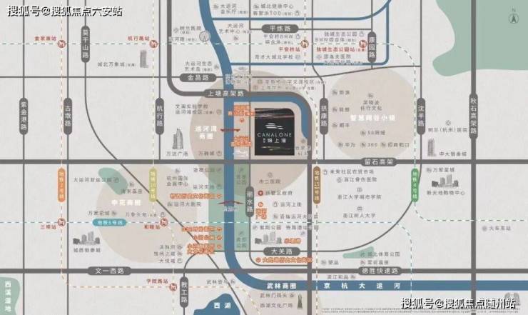 项目独占大运河1.2公里岸线,自建约11万㎡运河湾综合体(含演艺中心、水街),毗邻大运河音乐公园,运河绿道,京杭大运河博物馆,拱宸桥等已建成地标,兼具历史底蕴与现代文旅资源。