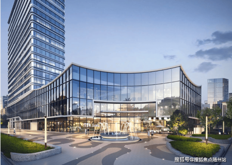 4.建筑:约80M地标建筑,全玻璃幕墙+流线型线条设计,极简美学;