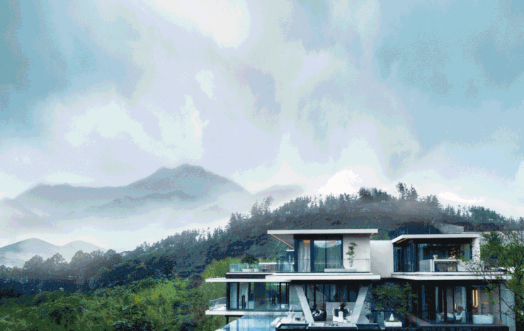 绿城·安吉桃花源-悦山居打造5层低密山居洋房,让建筑如同自然生长的植物一样,成为大地的艺术作品,并以“观山、倚山、隐山”建筑与山体的三种不同关系,让建筑与自然、建筑与人、人与自然的关系都得到了重新组织和设计。
