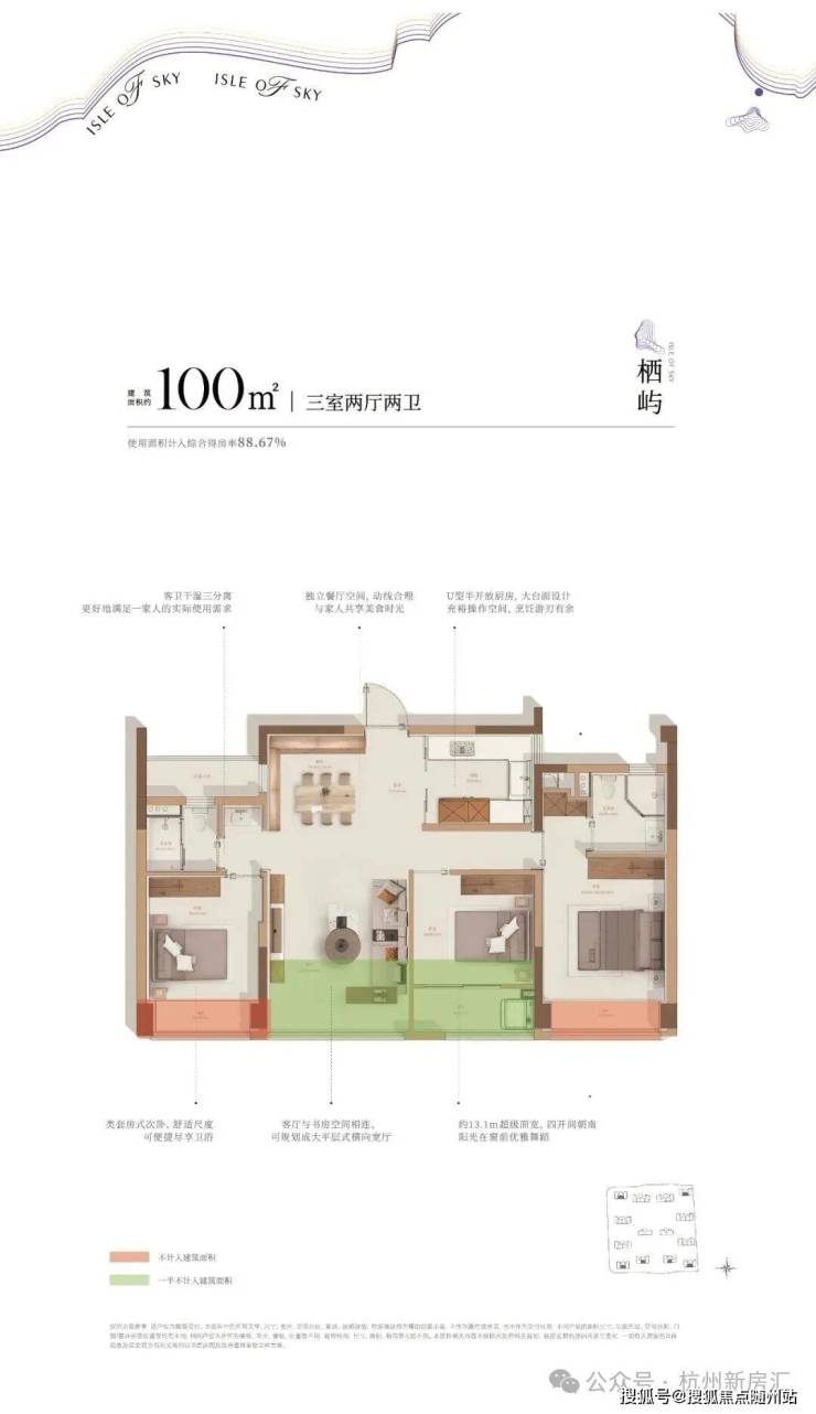 户型上,宣告了后限价时代杭州主城区第一个89方户型的回归,同时最大得房率约100%,突破传统尺度局限。