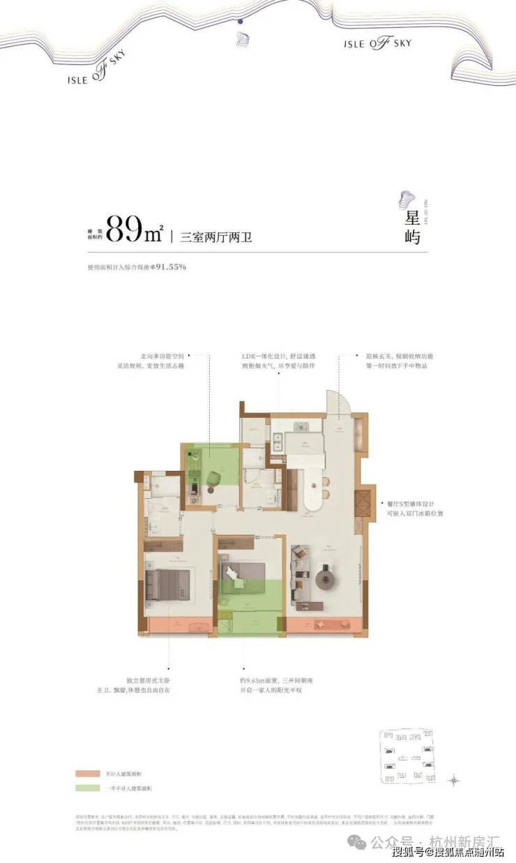 比如建面约89㎡是杭州时隔许久的小户型回归,得房率约91%,打造三开间朝南约9.65米大面宽、餐厅配有“S墙”可嵌入式双门冰箱,帮助年轻人轻松买房,住得更好。