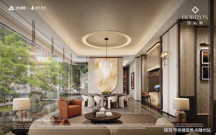 在浩运府下沉式庭院,对标京都安缦的打造理念,将园林景观与室内空间呼应,形成隐于林间的奢华度假感。