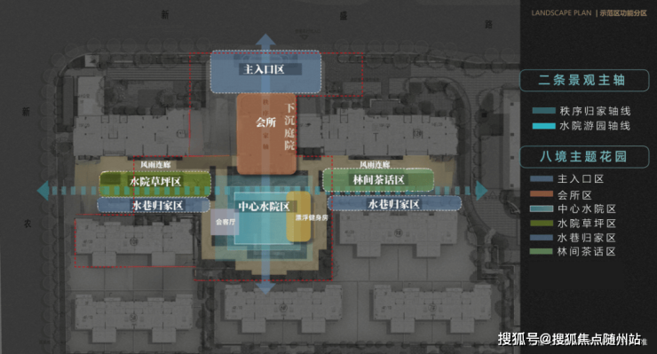 项目规划以“十字水院”为中心,引钱塘之水入园,蜿蜒串联入户门庭、风雨连廊、下沉水院、会所、漂浮健身房、阳光草坪等多处场景和节点,从外到内、一步一景、层层递进、可游可憩可感,打造融合自然与艺术的都市生活秘境,构建高配奢居体验。