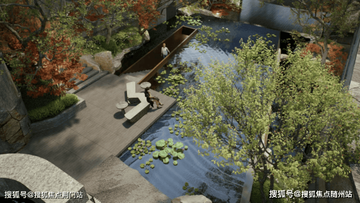 与此同时,台地地形也为园区景观,创造了更贴近自然的立体环境,光是贯穿园区450米的景观水系,就有了更立体的层次感。高低起伏的地形加上绿城的造园功力,那又是一种双倍获得。