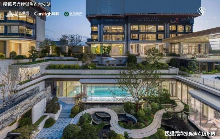 首层全架空设计(层高4.3-5.5米),下沉式庭院融合景观水系、恒温泳池及健身空间,架空层规划书吧、童玩区、共享厨房等多元功能,形成“立体泛会所”体系。