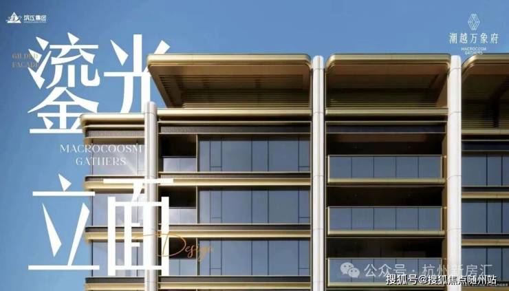 立面选用贝母白铝板,搭配劳斯莱斯同款香槟金色金属线条,再结合瀑布式“水晶灰”全景玻璃幕墙,不仅极大提升了室内采光与视野开阔度,更以灵动的天际轮廓,与杭州特有的江河韵味相融合,呈现出高级而耐看的建筑表情。