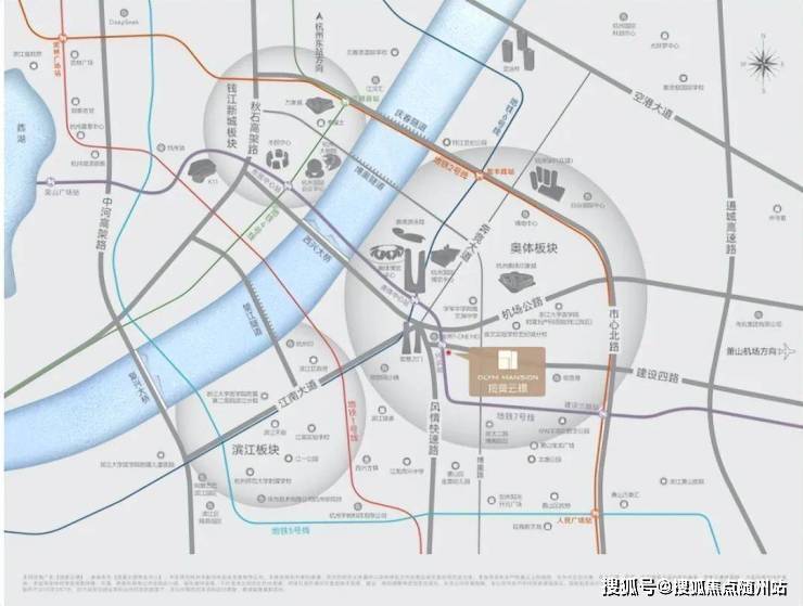 周边大小“莲花碗”、T - ONEMO(在建)、奥体中心、奥体印象城、滨江银泰城、杭州 SKP(在建)等地标建筑星罗棋布,构建起一个资源高度聚集的城市封面区域。同时,项目往西约200米便是重要交通干道风情大道,依托三横两纵的便捷路网,能够快速通达滨江区政府、万象城、来福士、市民中心等城市关键节点,交通优势显著。