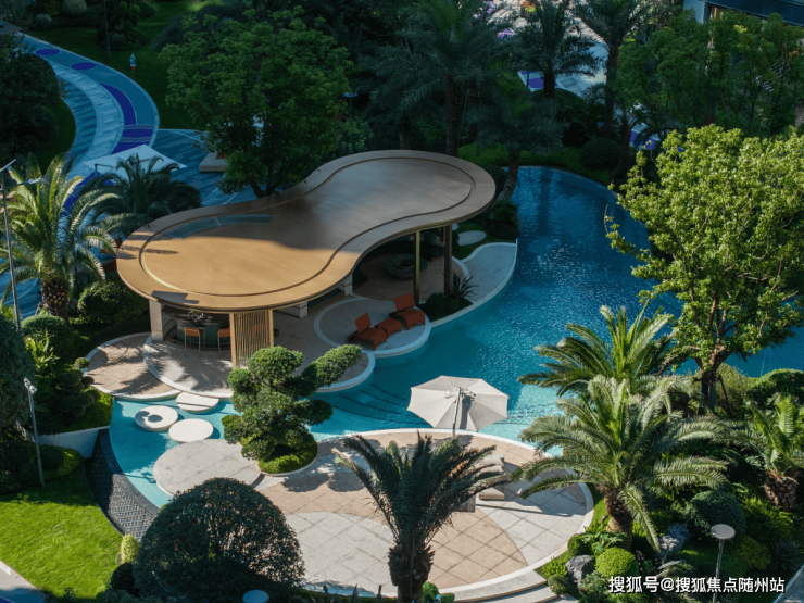 项目在现代化发展与传统文化保护之间找到了微妙的平衡,彰显了对自然与人文的深切敬畏与尊重。从园区内部景观至架空层的空间转换流畅自然,园内精心配置了棕榈树环绕的曲线艺术水景。