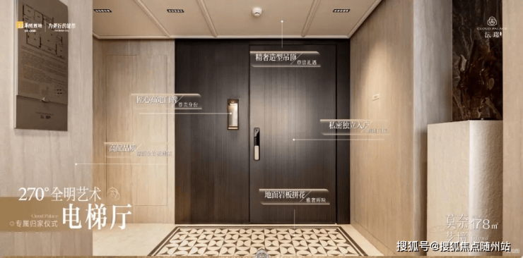在杭州沄璟,奢居空间的营造标准,在建面约145㎡户型临时展示单位内,被诗意的表达和演绎。巴黎蒙田大道,以激光蚀刻进香奈儿旗舰店青铜立面的山茶花,如今被蚀刻进杭州沄璟文的电梯门;入户门高定的“艺术壁龛门牌”,彰显独特的品位和身份。
