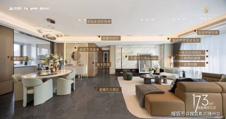内部装标配置更让你眼前一亮:餐客厅地面和电视背景墙为大理石交付,更有甚者,室内总共用到5款石材,墙面用尼斯木饰面取代以往的墙纸;厨房空调+博世六件套(含双台冰箱),东芝的中央空调,唯宝台盆、汉斯格雅五金、松下智能马桶、智能家居欧瑞博.....很多配置在云城,尚属首次!