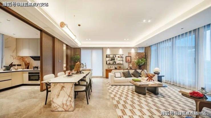 最后再来看餐客厅,直接把阳台纳入室内,变成客厅的一部分。你仔细看,它不是简单的封阳台,传统的封阳台和客厅是有门的,但这个没有,是直接融入。所以,它139平的餐客厅,面积达到了40平,面宽6.8米,这个空间尺度就真的很舒服呀。