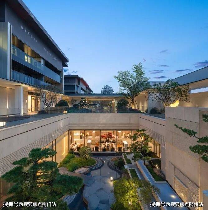 景观设计由北京顺景园林操刀,以“溪山行旅”为叙事主线,打造“归林-观山-临水-栖谷”四重景观序列,中央水景池底镶嵌《溪山行旅图》局部浮雕,实现文化符号的沉浸式植入。