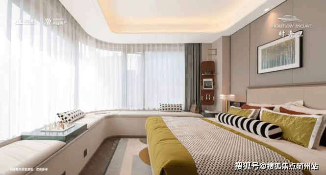 主卧270°转角飘窗堪称神来之笔——左望第三世界中心灯光秀,右瞰湿地星空,两种场景在一扇窗内自由切换,实现“城市繁华与自然静谧”的双重占有。