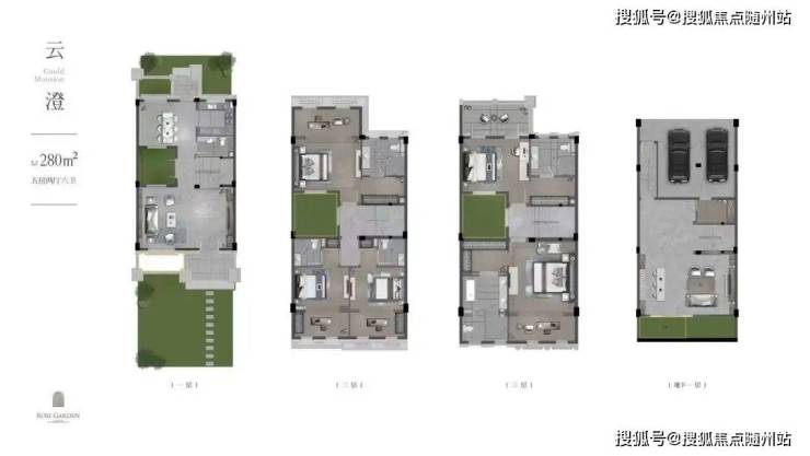 280㎡边套:南向三花园环绕,地下室直通私家车库,主卧套房配观景露台;