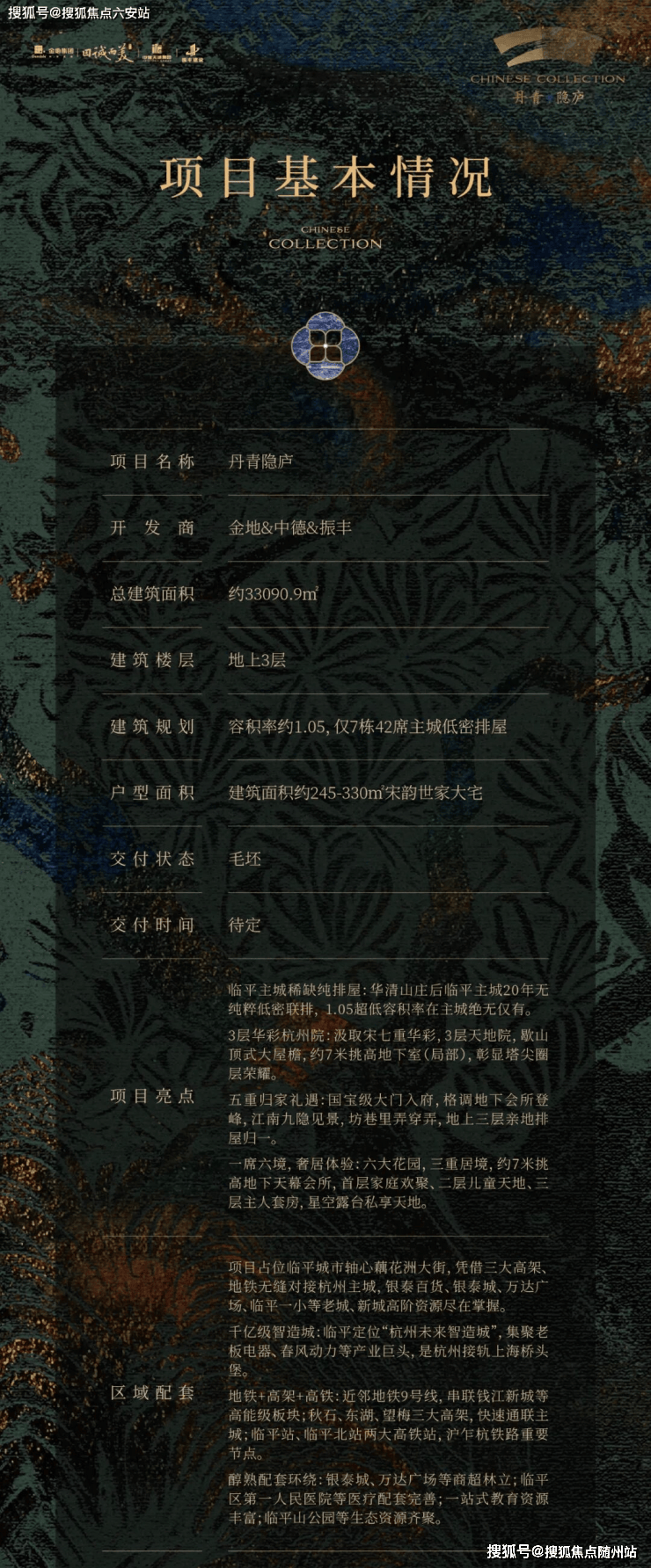 丹青隐庐|临平主城低密宋韵联排项目基本情况丹青隐庐位于临平老城芯藕花洲大街,由金地集团开发,总占地面积15538㎡,总建筑面积约3.3万㎡,容积率仅1.05,为临平主城20年来首个纯粹低密联排项目。