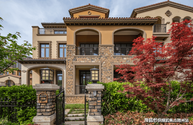 红砖米墙+坡顶拱门:复刻南加州度假风情,八角窗茶歇区、藤蔓铁艺栏杆、阳光地下室,每一处细节皆流淌着自由与松弛感。