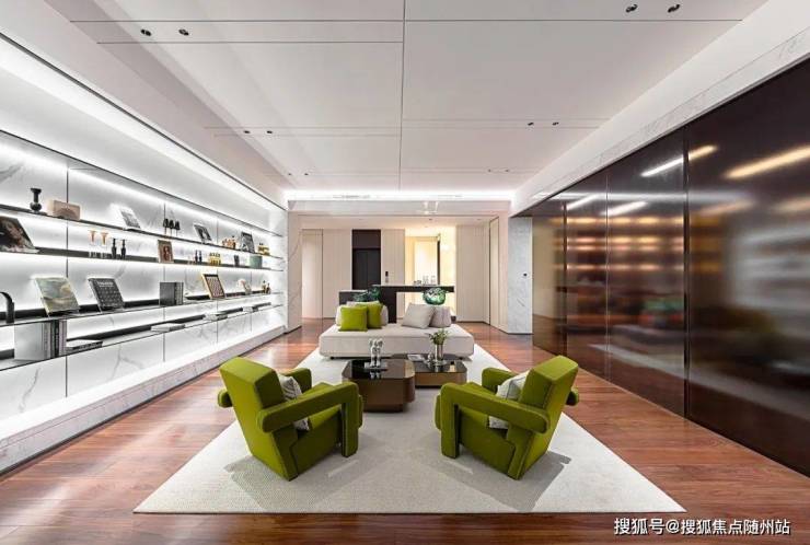 客厅开间约11.4米,超85㎡!搭配首层约4米的层高+大落地窗,颇有“独栋大厅”的气场。华家池908㎡的“华墅”,双厅加起来也就85㎡左右……