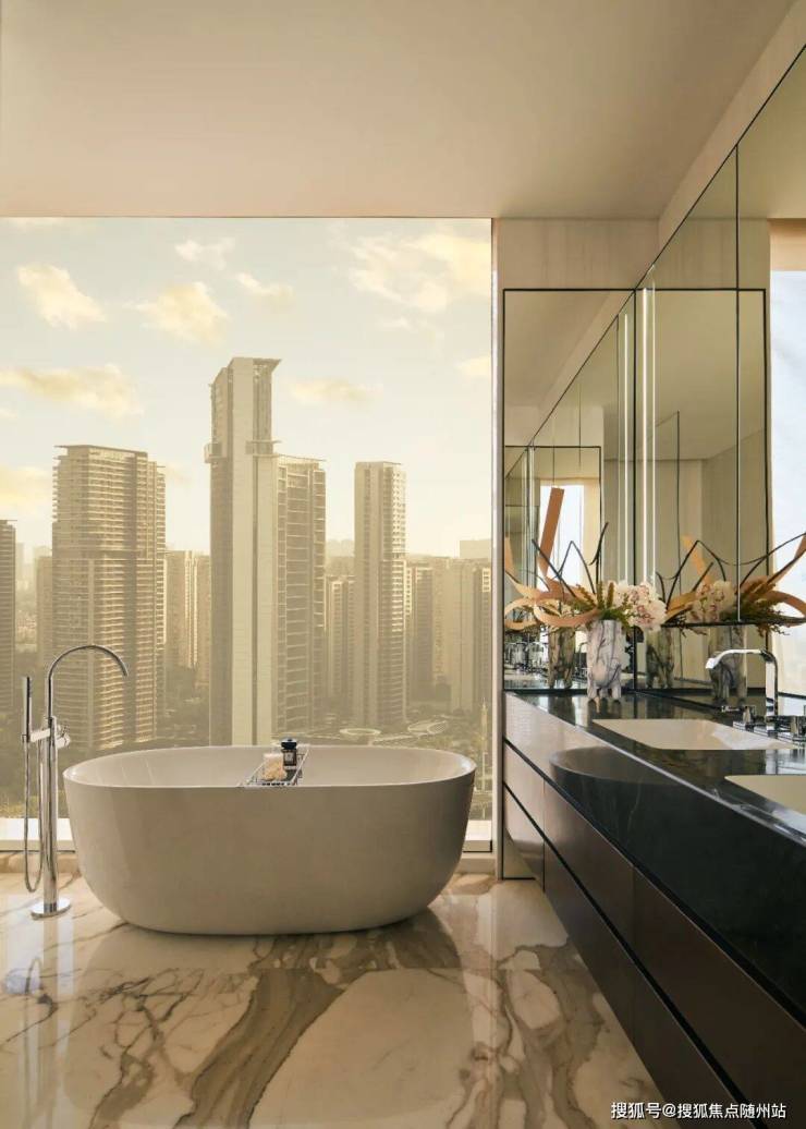 室内由 CCD(郑中设计事务所)打造,凸显了现代奢华和品味的精髓,从高档材料的运用到开放式的空间布局,270度“无柱转角落地客厅”站在Amber 98的样板间,奥体地标杭州之门近在咫尺,仿佛每一个建筑细节都触手可及。全屋通高的柜体,头顶的无边框灯具,将本就优越的层高直接拔高到了“奢享”的概念。