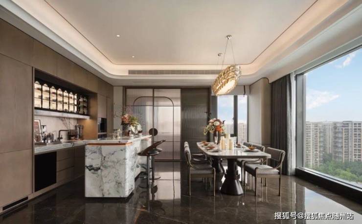 杭州拱墅区▰▰🔰凤咏朝阳🔰▰▰售楼处热线:400 816 9827 📞📞基于LDKB的布局,家人们共享整个空间,生活中的交互或社交时的沟通都可以轻松展开。餐厅背景奢石结合玄关金属隔断柜,一体化的形式下更添品质属性。空间上强化了交流与互动的核心,各个空间没有做刻意的分割,保持了空间的完整性和互动性。通过舒适宁静的空间节奏,带给使用者连贯的居家体系,保留“家”的韵味。