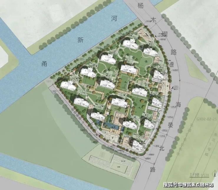 项目选址于三江片区东部的鄞州高新区居住板块,邻近东部新城,靠近甬新河畔。宁波作为长三角南翼的明珠,历史文化与自然生态在此交汇。基地西侧有甬新河,展现水乡与现代都市的融合。项目交通便利,紧邻地铁5号线出口,周边有主干道,自然河道景观优美。海晏天珺作为保利在宁波的豪宅项目,旨在引导雅奢生活方式,将城市自然度假的生活状态融入其中。