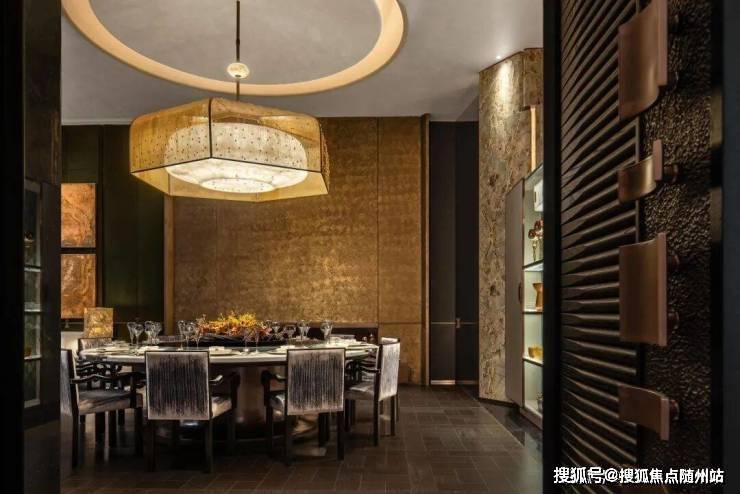进入门庭后,专属的堂前会客空间延续这份礼序与尊崇。如玺华院用木头的温润和榫卯的哲学建造穹顶,让来客感受中式建筑的千年智慧;观锦宸樾府用一处雨帘廊亭,去演绎“孤亭临峭岸,别有远泉来”的阔达;运河樾用5000片金箔贴顶,打造金顶华盖,诠释富贵满堂的东方气度。