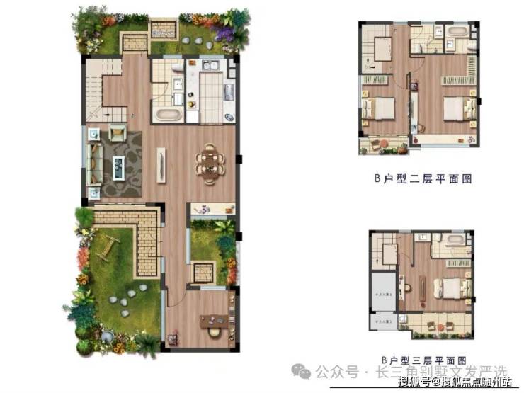 整个小区采用立体分层式空间设计,地上三层满足多代人生活需求,