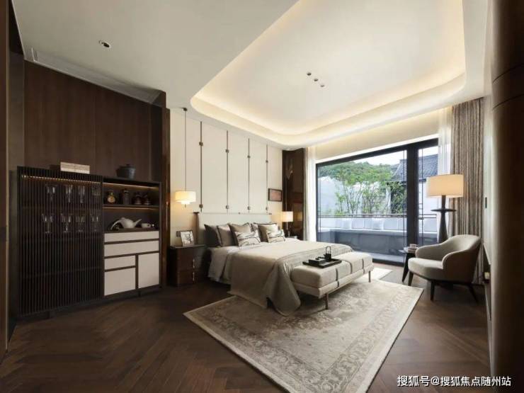 无论公区或卧室,大落地玻璃几乎贯穿全屋,风景得以长驱直入。没错,它的形制虽是中式,内里却如“玻璃盒子”般通透无界。人在宅中行,心在院中游。